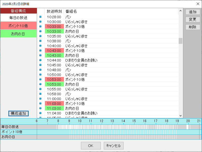 この日に別の番組構成を追加するには下にある「構成追加」ボタンを押します。番組構成追加ダイアログが表示されます。