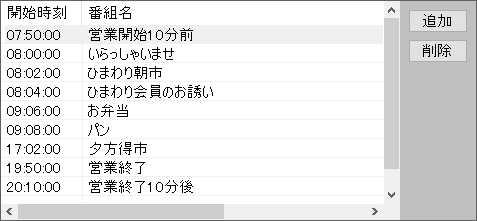| 削除 | 放送日一覧で選択されている放送日を削除します。 |