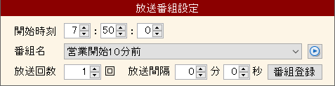 放送間隔を設定します。番組は放送開始時間から指定放送間隔で指定回数放送されます。