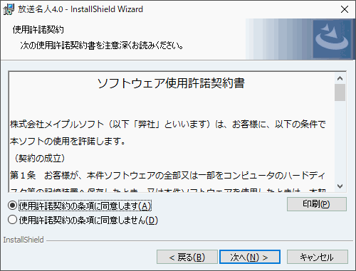 インストーラとは『放送名人』をインストールするためのプログラムです。