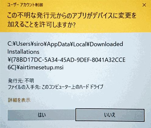 ファイル名はairtimesetup.exeです。