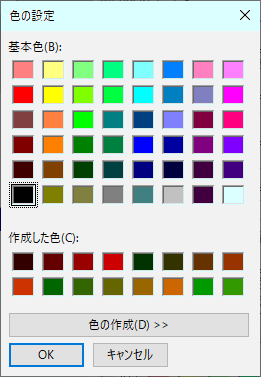 | 背景色ボタン | 背景色ボタンを押すと色設定ダイアログが表示されます。色を選択して「OK」ボタンを押します。 |