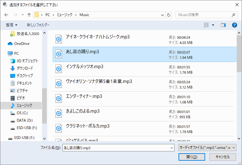 ファイルを選択して「開く」を押して下さい。一度に複数のファイルを選択することも可能です。