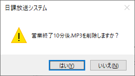 「はい」ボタンを押すと現在のデータからこの音源が削除されます。