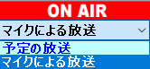 ON AIRパネルでは、放送のON・OFF、予定の放送とマイクによる放送の切替、音量の調整等を行います。