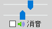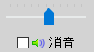 音量調整は音量スライドで調整します。右が音量が大きく、左が音量が小さくなります。