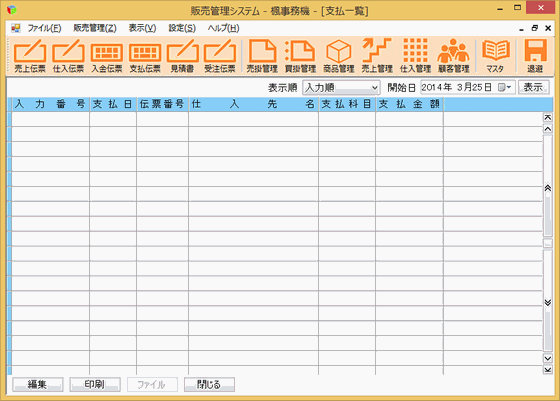 ツールバーの[支払伝票]ボタンを押すと、支払伝票一覧画面が表示されます。