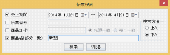 | 伝票を検索 | 伝票検索ダイアログを表示して伝票を検索します |