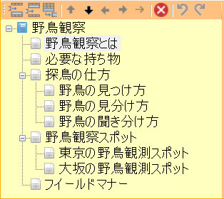 文書編集領域では、このような文書とこれを構成するページの関係を、文書を頂点とするツリー構造で表示します。