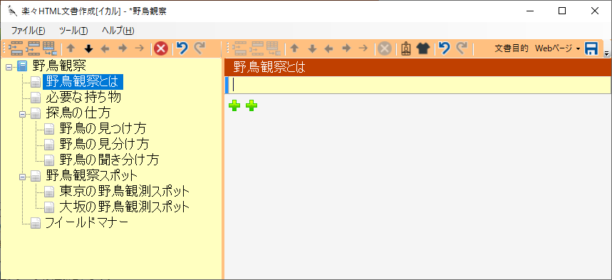 イカルはアウトラインプロセッサによるHTML文書を作成するソフトウェアです