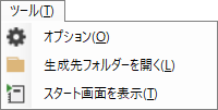 メインメニューには「ファイル」「ツール」「ヘルプ」の3つのメニューがあり、各々サブメニューを持ちます。