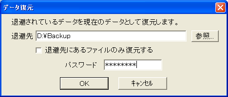 退避したデータが保存されているフォルダを設定します。[参照...]ボタンで保存先を参照することもできます。