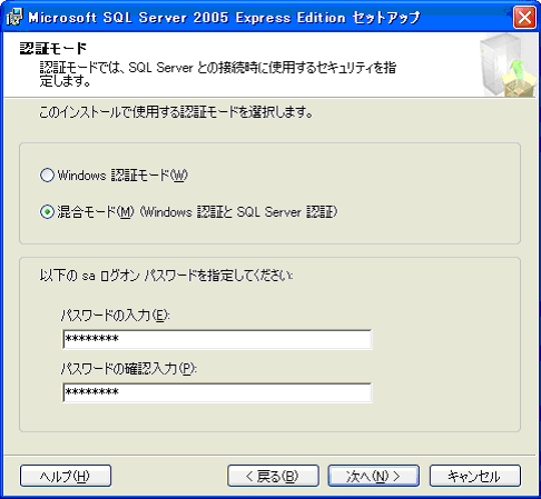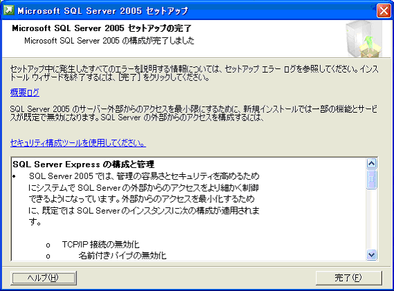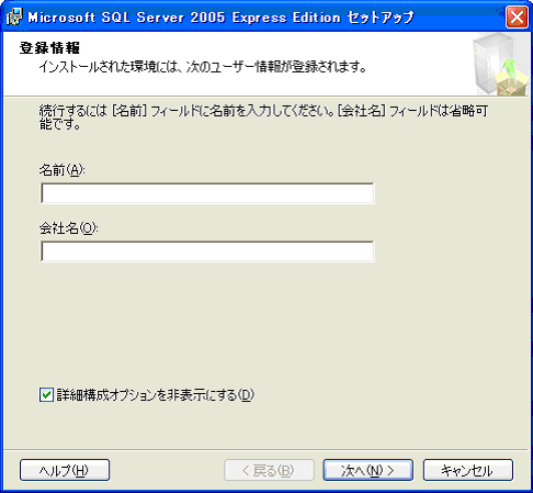 Microsoft SQL Server 2005 Express Editionのインストール