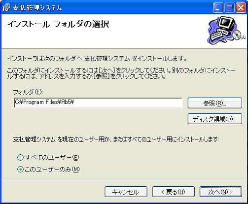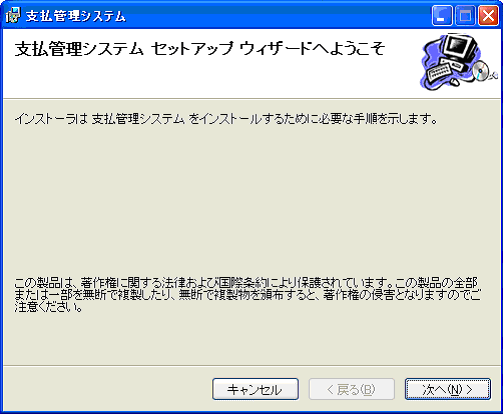 支払管理システムのセットアッププログラムが呼び出されます。