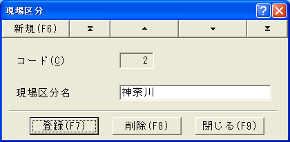 現場区分の登録には現場区分登録ダイアログが使われます。