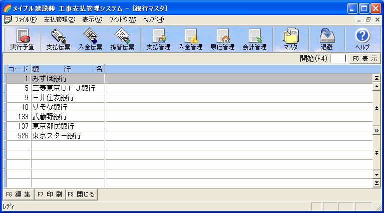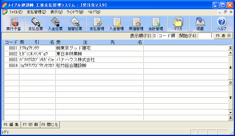 工事種目コードを入れて[F5表示]ボタンを押すと、指定コード以降の工事種目を一覧に表示します。