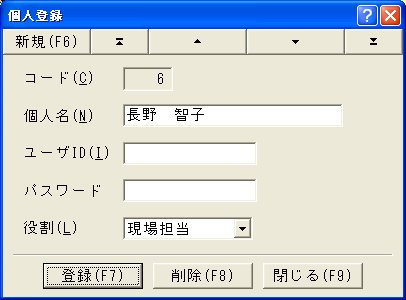現場担当者として個人コードを入力します。ボタンで選択することもできます。個人は個人マスタに登録されています。個人登録されていない場合はここで登録することもできます。現場担当者は担当者別の査定表を作成するのに使用されます。