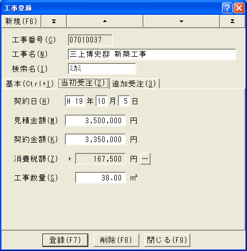 5.8.2.2 工事登録ダイアログ(当初受注タブ)