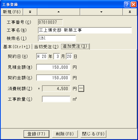 5.8.2.3 工事登録ダイアログ(追加受注)