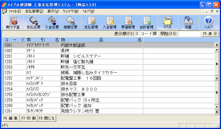 物品マスタは工事外の支払に使用されます。また発注明細の入力にも使用されます。