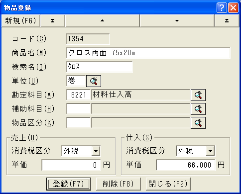 物品の登録には物品登録ダイアログが使われます。
