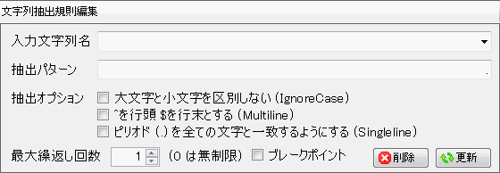 | [更新]ボタン | この文字列抽出規則を更新します。 |