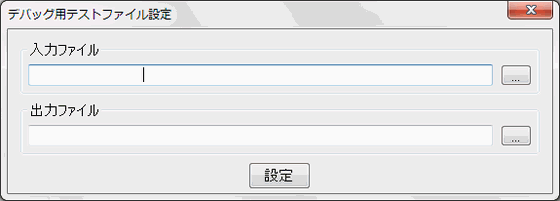テスト用の入力ファイルと、変換結果の出力ファイルを設定して下さい。