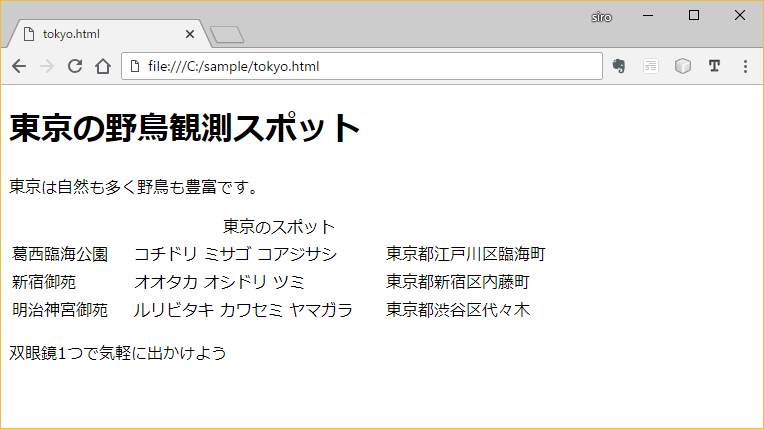 「葛西臨海公園」から「双眼鏡1つで気軽に出かけよう」の前までをテーブルにします。